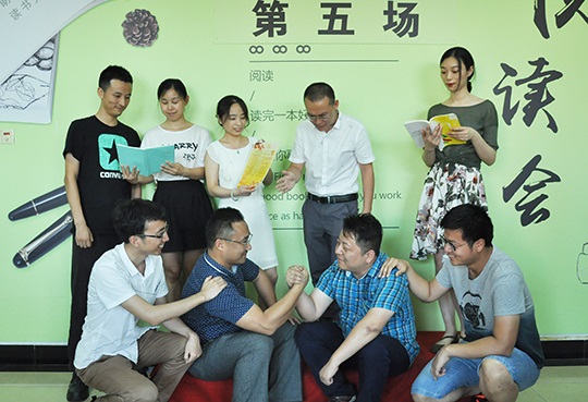 我們三圣的企業(yè)文化活動(dòng),今年又邁向新的高度:隨著(zhù)三圣文健社團的成立,各子公司的職工紛紛報名參加了“浪漫吉他”、“悅讀會(huì )”、“動(dòng)感籃球”、“活力乒乓”等集文娛健身又形式多樣的社團活動(dòng)。此期公眾號展示的,正是其中文藝社團之一:“三圣悅讀會(huì )”近期如火如荼進(jìn)行的大型活動(dòng)----朗讀大賽的直播場(chǎng)景。