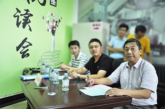 只見(jiàn):平日里雷厲風(fēng)行的品管中心負責人黃大俠一個(gè)箭步蹭上舞臺,他談古論今式地朗誦,讓人們眼前一亮,“誠宜開(kāi)張圣聽(tīng),以光先帝遺德,恢弘志士之氣,不宜妄自菲薄,引喻失義,以塞忠諫之路也……”,既有古人的真情表白,更有世人的針砭時(shí)弊。