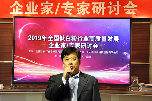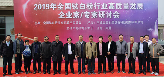 2019年3月29日至31日,2019年鈦白粉行業(yè)高質(zhì)量發(fā)展企業(yè)家/專(zhuān)家研討會(huì )在南通三圣石墨設備科技股份有限公司召開(kāi),全國鈦白粉行業(yè)來(lái)自四川、重慶、廣東、安徽、江蘇、浙江、甘肅等省、市的主要鈦白粉企業(yè)的董事長(cháng)、總經(jīng)理或技術(shù)負責人、全國鈦白粉行業(yè)專(zhuān)家顧問(wèn)委員會(huì )的專(zhuān)家、國家化工行業(yè)生產(chǎn)力促進(jìn)中心鈦白分中心主任、鈦白粉產(chǎn)業(yè)技術(shù)創(chuàng  )新戰略聯(lián)盟理事長(cháng)等近三十位企業(yè)家、專(zhuān)家、領(lǐng)導齊聚南通,聚焦鈦白粉行業(yè),共謀高質(zhì)量發(fā)展。