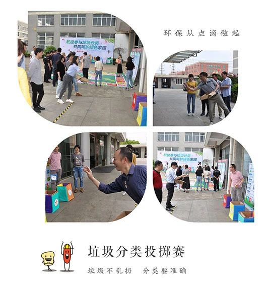 本年度的環(huán)保日主題活動(dòng),融匯了知識、趣味、合作、體育等多種元素,共組織了與垃圾分類(lèi)相關(guān)的計時(shí)賽、投擲賽、飛行棋、知識競賽搶答等四個(gè)項目,分區活動(dòng),并設有垃圾分類(lèi)知識普及專(zhuān)欄展示區,供大家邊玩邊學(xué)邊體驗,從實(shí)施垃圾分類(lèi)的重要性,到各種垃圾如何進(jìn)行分類(lèi)等方面,寓教于樂(lè ),引得陣陣圍觀(guān):“這樣的宣傳方式既有意義又有趣,輕松易學(xué),真是一舉兩得?!?/p>