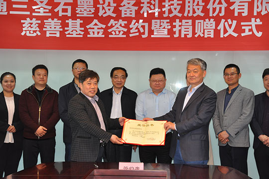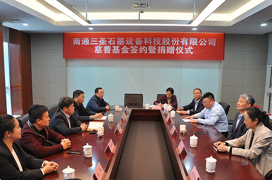 2020年4月21日,“南通三圣石墨設備科技股份有限公司慈善基金簽約暨捐贈儀式”在南通開(kāi)發(fā)區能達大廈401會(huì )議室召開(kāi),該項基金將主要用于開(kāi)發(fā)區安老扶幼、助學(xué)助醫、扶貧賑災、助殘濟困、公益環(huán)保等慈善公益事業(yè),推動(dòng)該區慈善事業(yè)的健康發(fā)展。