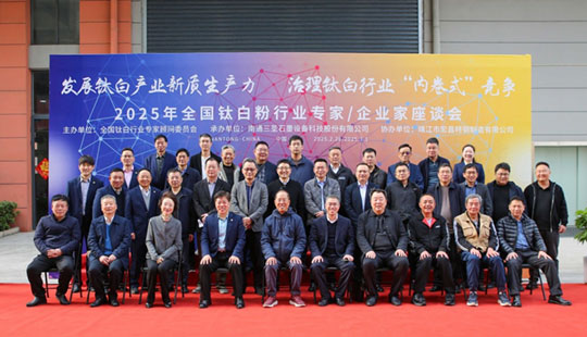 3月1日,2025年全國鈦白粉行業(yè)專(zhuān)家/企業(yè)家座談會(huì ),在南通三圣石墨設備科技股份有限公司舉行。來(lái)自鈦白粉產(chǎn)業(yè)技術(shù)創(chuàng )新戰略聯(lián)盟、全國各地鈦白企業(yè)、鈦白裝備企業(yè)、媒體等單位的代表參加了此次座談會(huì )。